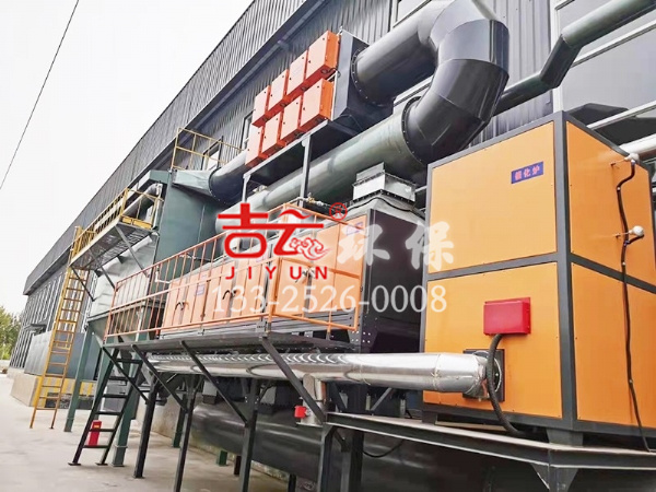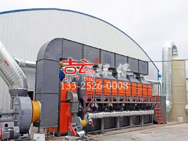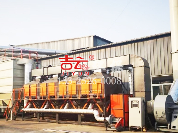 當(dāng)系統(tǒng)溫度達(dá)到預(yù)定的催化溫度時,系統(tǒng)自動停止預(yù)熱器的加熱,當(dāng)溫度不夠時,系統(tǒng)又重新啟動預(yù)熱器,使催化溫度維持在一個適當(dāng)范圍;當(dāng)催化床的溫度過高時,開啟補(bǔ)冷風(fēng)閥,向催化床系統(tǒng)內(nèi)補(bǔ)充新鮮空氣,可有效地控制催化床的溫度,預(yù)防催化床的溫度過高。此外,系統(tǒng)中還有阻火器,可有效的防止火焰回竄。當(dāng)活性炭吸附床脫附時溫度過高時,自動啟用補(bǔ)冷風(fēng)機(jī)降低系統(tǒng)溫度,溫度超過報警,確保系統(tǒng)處理安全狀態(tài)。